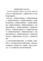 优秀团队申报材料优选20篇【导语】优秀团队申报材料优选20篇由网会员“dulala777”整理投稿精心推荐,小编希望对你的学习工作能带来参考借鉴作用。【目录】篇1:优秀团队申报材料篇2:优秀团队申报材料篇3:优秀团队申报材料篇4:优秀团队申报材料篇5:优秀团队申报材料篇6:优秀团队申报材料篇7:优秀团队申报材料篇8:优秀团队申报材料篇9:优秀团队申报材料篇10:优秀团队申报材料篇11:优秀团队申报材料篇12:优秀团队申报材料篇13:优秀团队申报材料篇14:优秀团队申报材料篇15:优秀团队申报材料篇16:优秀团队申报材料篇17:优秀团队申报材料篇18:优秀团队申报材料篇19:优秀团队申报材料篇2...