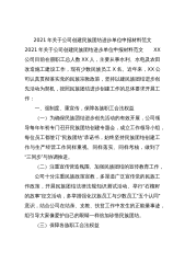 2021年关于公司创建民族团结进步单位申报材料范文2021年关于公司创建民族团结进步单位申报材料范文 XX公司目前在册职工总人数XX人,主要从事水利、水电及农田改造施工建设工作,现有少数民族员工X名。近年来,XX公司认真贯彻落实党的民族宗教政策,坚持以建民族团结进步创先活动为契机,按照民族团结进步创建工作的总体要求开展工作: 一、强制度、重宣传,保障各族职工合法权益 (一)为确保民族团结进步创先活动的有效开展,公司领导每年年初专门召开民族团结创建专题会,成立工作领导小组,每位员工都签订“民族团结”承诺书,始终坚持民族团结创建工作与生产经营工作同样重视、同样落实、同样考核,做到了“三同步”...