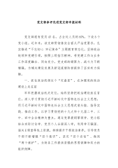 五好党支部申报材料“一个支部就是一个堡垒,一名党员就是一面旗帜”。奋战在柳南铁路工程工地的集团公司指挥部指挥部党支部共有党员18名。面对所担负的湘桂铁路柳南段和南黎铁路工程工期紧、任务重、条件差等不利因素,党支部紧紧围绕施工生产开展工作。广大党员高擎党旗,团结带领员工队伍迎难而上,攻坚克难,身先士卒,争优创先,出色地完成了一项又一项工程施工任务,赢得了各级领导的高度评价。自去年10月工程开工以来,指挥部党支部就紧紧的围绕中心工作开展各项活动。面对南方,气候十分潮湿,早晚温差较大等具体困难,我支部从思想上要求全体职工积极上进,做好能长期吃苦耐劳,敢打硬仗的精神准备,同时要求全体党员带头,鼓舞同事...