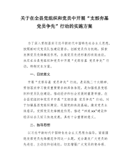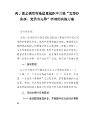 关于在全镇农村基层党组织中开展“支部办实事、党员当先锋”活动的实施方案各村党支部:为进一步发挥农村基层党组织的战斗堡垒作用和农村党员的先锋模范作用,保持和发展党的先进性,增强党在农村的执政基础,积极推进基层治理创新,根据《党章》、《农村基层组织工作条例》等党内条规和区委有关要求,经镇党委专题会议研究决定,在全镇农村基层党组织中开展“支部办实事、党员当先锋”活动,制定如下实施方案:一、指导思想以习近平新时代中国特色社会主义思想和党的二十大、二十届二中、三中全会精神为指导,以“一名党员一份责任,一名党员一面旗帜”为活动目标,紧紧围绕创新社会治理,调动广大农村党员的干事创业热情,充分发挥农村基层党组织的战斗堡垒作用和农村党员的先锋模范作用。二、活动主要内容和措施(一)选优配强基层班子,不断提升党支...