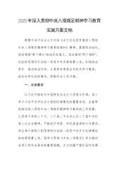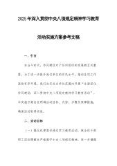 国企公司2025年开展深入贯彻中央八项规定精神学习教育的实施方案文稿为深入贯彻党中央全面从严治党决策部署,全面落实《中共中央办公厅关于在全党开展深入贯彻中央八项规定精神学习教育的通知》要求,推动中央八项规定精神在〔公司名称〕落地生根,引导公司党员干部筑牢风清气正的思想根基,营造求真务实、清正廉洁的工作氛围,依据中央党的建设领导小组和上级党委部署,结合公司实际,特制定本方案。本次学习教育围绕"深化认识、查找问题、整改提高、巩固成果"四个总体要求,强化理论武装,突出问题导向,注重实际成效,旨在不断增强贯彻落实中央八项规定精神的思想自觉和行动自觉,推动公司管理水平和作风建设迈上新台阶,为公司高质量发...