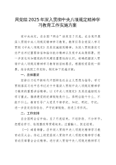 2025年市直部门深入贯彻中央八项规定精神学习教育实施方案供借鉴为深入贯彻落实中央八项规定精神,进一步加强体育系统作风建设,营造风清气正的教育生态,根据上级有关要求,结合我市体育系统实际,制定本实施方案。一、指导思想坚持以习近平新时代中国特色社会主义思想为指导,深入学习贯彻党的二十大精神,全面落实中央八项规定及其实施细则精神,深刻领会习近平总书记关于作风建设的重要论述,以高度的政治自觉、思想自觉和行动自觉,推动体育系统作风建设常态化、长效化。通过学习教育,引导广大党员干部和教职工增强纪律意识、规矩意识,切实纠正"四风"问题,弘扬艰苦奋斗、勤俭节约、廉洁奉公的优良传统,为办好人民满意的教育提供坚...