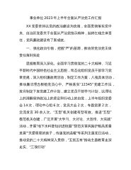事业单位2023年上半年全面从严治党工作汇报XX党委坚持以党的政治建设为统领,全面贯彻落实党中央、自治区党委关于全面从严治党指示精神,始终扛稳主体责任,党风廉政建设有了新成效。一、强化政治引领,把握“严”的基调,推动管党治党主体责任落到实处思想教育深入深化。全面学习贯彻党的二十大精神、习近平新时代中国特色社会主义思想,常态化组织党员干部学习党章党规,深入组织廉政周活动,制定工作方案,八项具体活动,推动廉洁理念根植党员心中。严格落实“12345”党建工作法,按月制定下发党建工作计划,建立党员干部学习计划,以理论上的清醒保持政治上的坚定和行动上的自觉,上半年组织党委会14次,理论中心组6次,党员大...