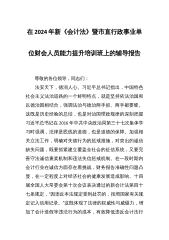 在2024年新《会计法》暨市直行政事业单位财会人员能力提升培训班上的辅导报告