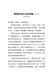 乡镇春节假期后全体干部职工大会讲话范文同志们:春节刚过,我们就在这里召开全体干部会议,借此机会,我代表领导班子,向大家拜个晚年,祝大家在新的一年里身体健康、工作顺利、阖家团圆。今天的会议,既是一个团结鼓劲、调整状态的收心会,也是一个明确目标、启动各项工作的动员会。目的是希望全体干部职工要进一步统一思想,迅速把思想和精力转移到工作中来,按照各自职能分工,精心安排好工作,为圆满完成今年各项工作任务开好局、起好步。下面,我结合大家的发言,讲三点意见:一、迅速收心归位,开启工作模式一年之计在于春,一日之计在于晨。全力做好2023年经济社会发展各项工作,开局起步阶段至关重要。全镇上下要提高政治站位,迅速...