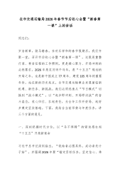 在市行政审批和政务信息管理局2026年春节节后收心会暨“新春第一课”上的讲稿同志们:新春伊始,万象更新。今天我们召开春节节后收心会暨“新春第一课”,主要目的是动员全局上下迅速从“节日状态”切换到“工作状态”,以“开局即冲刺、起步即决战”的奋进姿态,全身心投入到新一年的工作中来。2026年是“十五五”规划的开局之年,是农历生肖马年,是新中国成立77周年,也是中国共产党成立105周年。站在新的历史起点,我们肩负着深化“放管服”改革、优化营商环境、推进数字政府建设、提升政务服务效能的时代重任这次会议既是一次调整状态的收心会,也是一次明确目标的部署会,更是一次凝聚共识、鼓舞士气的动员会。希望大家迅速收心归位、凝心聚力,以饱满的热情、务实的作风、昂扬的斗志,奋力开创我市行政审批和政务信息管理工作新局面...