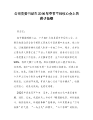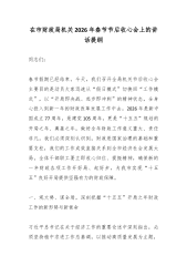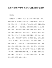 在市工业和信息化局机关2026年春节节后收心会上的讲话提纲同志们:新春伊始,万象更新。今天是农历甲午马年春节后首个工作日,我们在此召开全局机关收心会,目的非常明确:一是引导大家迅速从“假日模式”切换到“工作模式”,收心归位、振奋精神;二是动员全局上下以“开局即决战、起步即冲刺”的奋进姿态,抢抓时间、积极作为;三是凝心聚力,为圆满完成2026年各项任务、实现“十五五”工业和信息化发展精彩开局奠定坚实思想基础和工作基础。2026年是“十五五”规划的开局之年,是中华人民共和国成立77周年、中国共产党成立105周年,做好全年工作意义特殊、责任重大。我们务必以龙马精神展现新气象,以快马加鞭实现新作为。一、收心归位,认清形势,切实增强做好“十五五”开局之年工作的责任感和紧迫感“所当乘者势也,不可失者时也...