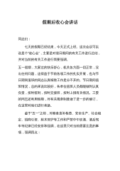 2023收心会的讲话简短发言同志们:新春伊始,万象更新。我代表局班子给大家拜个晚年,祝大家在新的一年里,身体健康、工作顺利、阖家幸福。节后上班第一天召开全体干部会议,基本上已经成为咱们局的惯例。它既是集中归位、调整状态的收心会,又是打气鼓劲开始工作的动员会。经过了春节假期,大家的身心得到了休息、休整,希望大家能以信心百倍、充满活力的状态迅速投入到新年的工作中,抢抓时间,务实创新,扎实工作,为今年各项工作任务开好局、起好步。下面,我讲三点意见。一、收假收心,立即进入工作状态XXX年我们安排了多项重点工作,任务比较繁重,要求大家马上从假期的气氛和状态里走出来,按照已经确定的思路、目标、方案、路径、...