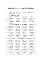 XX区红十字会党组书记2025年度述职述廉报告2025年,在区委、区政府的坚强领导和上级红十字会的精心指导下,我认真履行党组书记职责,团结带领全体干部职工,深入学习贯彻习近平新时代中国特色社会主义思想和党的二十届四中全会精神,扎实开展深入贯彻中央八项规定精神学习教育,聚焦“三救三献”主责主业,大力弘扬“人道、博爱、奉献”的红十字精神,推动红十字事业取得新发展。现将一年来的履职情况报告如下:一、强化理论武装,筑牢思想根基始终把政治建设摆在首位,坚持用习近平新时代中国特色社会主义思想凝心铸魂。一是抓实理论学习。严格落实“第一议题”制度,全年召开党组理论学习中心组学习12次,深入学习党的二十届四中全会精神、习近平总书记关于红十字事业的重要指示批示精神。组织全体党员开展深入贯彻中央八项规定精神学习教...