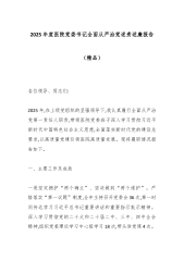 2025年度医院党委书记全面从严治党述责述廉报告(精品)各位领导、同志们:2025年,在上级党组织的坚强领导下,我认真履行全面从严治党第一责任人职责,带领医院党委班子深入学习贯彻习近平新时代中国特色社会主义思想,全面落实新时代党的建设总要求,以高质量党建引领医院高质量发展。现将履职情况报告如下。一、主要工作及成效一是坚定拥护“两个确立”、坚决做到“两个维护”。严格落实“第一议题”制度,全年主持召开党委会36次,第一时间传达学习习近平总书记重要讲话和重要指示批示精神。深入学习贯彻党的二十大和二十届二中、三中、四中全会精神,组织党委理论学习中心组学习18次,带头讲党课4次。党的二十届四中全会召开后,第一时间组织专题学习,深刻领会“十五五”规划建议精神。认真学习贯彻二十届中央纪委四次全会及省市纪委...