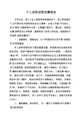 个人述职述责述廉报告今年以来,我个人在上级领导的坚强领导下,深入贯彻落实习近平新时代中国特色社会主义精神,以深入开展“不忘初心、牢记使命”主题教育为主线,认真履行强学习、精业务、担责任、必廉政等各项工作职责,圆满完成了各项工作任务。现就相关工作述职述责述廉如下:一、加强理论,提高站位,以“不积跬步无以至千里”的韧劲夯实思想基础本人始终把理论学习摆在重要位置,积极参加党支部各类党组织活动,坚持不懈地学习党的先进理论和方针政策。一是抓实“重点”学。以学好习近平新时代中国特色社会主义思想和系列讲话精神为先导,始终把学习政策理论和法律法规当作首要任务来抓,充分利用培训、书本、学习强国app、干部网络学...