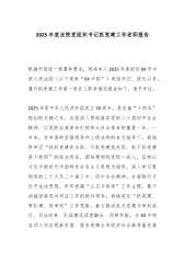 党组书记2025年抓基层党建工作述职报告(精品)按照县委组织部关于开展2025年度基层党组织书记抓党建工作述职评议考核的通知要求,现将我履行抓基层党建工作第一责任人职责情况报告如下:一、履职情况2025年,我始终坚持以习近平新时代中国特色社会主义思想为指导,深入学习贯彻党的二十大和二十届历次全会精神,认真落实习近平总书记考察安徽重要讲话精神,紧紧围绕《中国共产党党和国家机关基层组织工作条例》要求,扛牢抓基层党建工作第一责任人职责,以建设政治机关、模范机关和“四强”党支部为目标,推动机关党建工作与业务工作深度融合,全年党建工作取得积极成效。一是直接上手抓理论武装,夯实思想根基。我坚持把政治建设摆在首位,严格落实“第一议题”制度,全年主持召开党组会议研究党建工作16次,将学习习近平总书记关于党的...