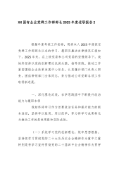 XX市应急管理局党组书记、局长2025年度抓基层党建工作述职报告2 根据市委统一部署和要求,现将本人2025年度履行抓基层党建工作第一责任人职责情况述职如下: 2025年,在市委的坚强领导下,我始终坚持以党的创新理论武装头脑、指导实践、推动工作,团结带领局党组一班人,紧紧围绕新时代党的建设总要求,深入学习贯彻党的二十届四中全会精神,以持续深化落实中央八项规定精神为抓手,以构建“三个赋能”党建体系为载体,全力推动党建与应急管理业务深度融合,为有效防范化解重大安全风险、守护人民群众生命财产安全提供了坚强的政治保证和组织保证。 一、聚焦政治引领,把稳事业发展“方向盘”,在筑牢思想根基上彰显新高度 我深刻认识到,应急管理部门首先是政治机关,必须把党的政治建设摆在首位。一年来,我始终坚持将强化...