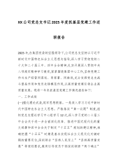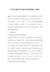 工行分行党委书记2025年度述职报告(精品)2025年,在省分行党委的坚强领导下,我认真履党委书记职责,坚持以习近平新时代中国特色社会主义思想为指导,深入学习贯彻党的二十大和二十届三中、四中全会精神,紧紧围绕“防风险、强监管、促发展”工作主线,带领全行干部员工攻坚克难、砥砺奋进,较好完成了全年各项目标任务。现将履职情况报告如下:一、履职情况(一)强化理论武装,筑牢思想根基坚持把学习贯彻习近平新时代中国特色社会主义思想作为首要政治任务,严格落实“第一议题”制度,全年组织党委理论学习中心组集中学习12次,专题研学党的二十届三中、四中全会精神。扎实开展深入贯彻中央八项规定精神学习教育,一体推进“学查改”,组织读书班2期、警示教育4次,查摆问题清单16项并逐项整改落实。深入学习中央金融工作会议精神,...