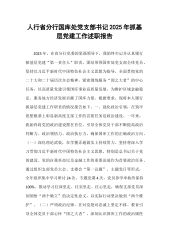 人行省分行国库处党支部书记2025年抓基层党建工作述职报告2025年,在省分行党委的坚强领导下,我始终牢记并认真履行抓基层党建“第一责任人”职责,团结带领国库处党支部全体党员,坚持以习近平新时代中国特色社会主义思想为指导,全面贯彻党的二十大和二十届历次全会精神,紧密围绕服务“国之大者”的中心任务,以高质量党建引领国库事业高质量发展,为维护区域金融稳定、服务地方经济发展贡献了国库力量。根据要求,现将本人履行抓基层党建工作职责的情况报告如下。一、强化政治引领,在筑牢思想根基上彰显新高度支部工作的首要任务是政治建设。一年来,我始终将党的政治建设摆在首位,引导全体党员干部不断提高政治判断力、政治领悟力、政治执行力,确保国库工作的正确政治方向。(一)深化理论武装,在学懂弄通做实上持续用力。坚持将深入学...