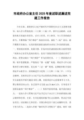 市政府办公室主任2025年度述职述廉述党建工作报告今年以来,我坚持以习近平新时代中国特色社会主义思想为指导,深入学习贯彻党的二十大和二十届三中、四中全会精神,认真落实机关党建主体责任,以守土有责、守土担责、守土尽责的政治担当,不断增强“两个维护”的政治自觉,强化“三标”意识,提升履职尽责能力,以高质量党建促进政府办业务工作高质量发展。一、坚持政治统领、党建引领,打造对党忠诚的政治机关始终坚持“政府办公室首先是政治机关,党员干部的首要责任是政治责任”理念,把坚决践行“两个维护”作为首要任务。(一)坚持政治引领,筑牢思想根基。严格落实“第一议题”制度、理论学习中心组集体学习研讨制度、党支部“三会一课”制度,定期组织机关党组理论中心组学习,持续跟进学习党的二十大和二十届二中、三中全会精神,及时传达...