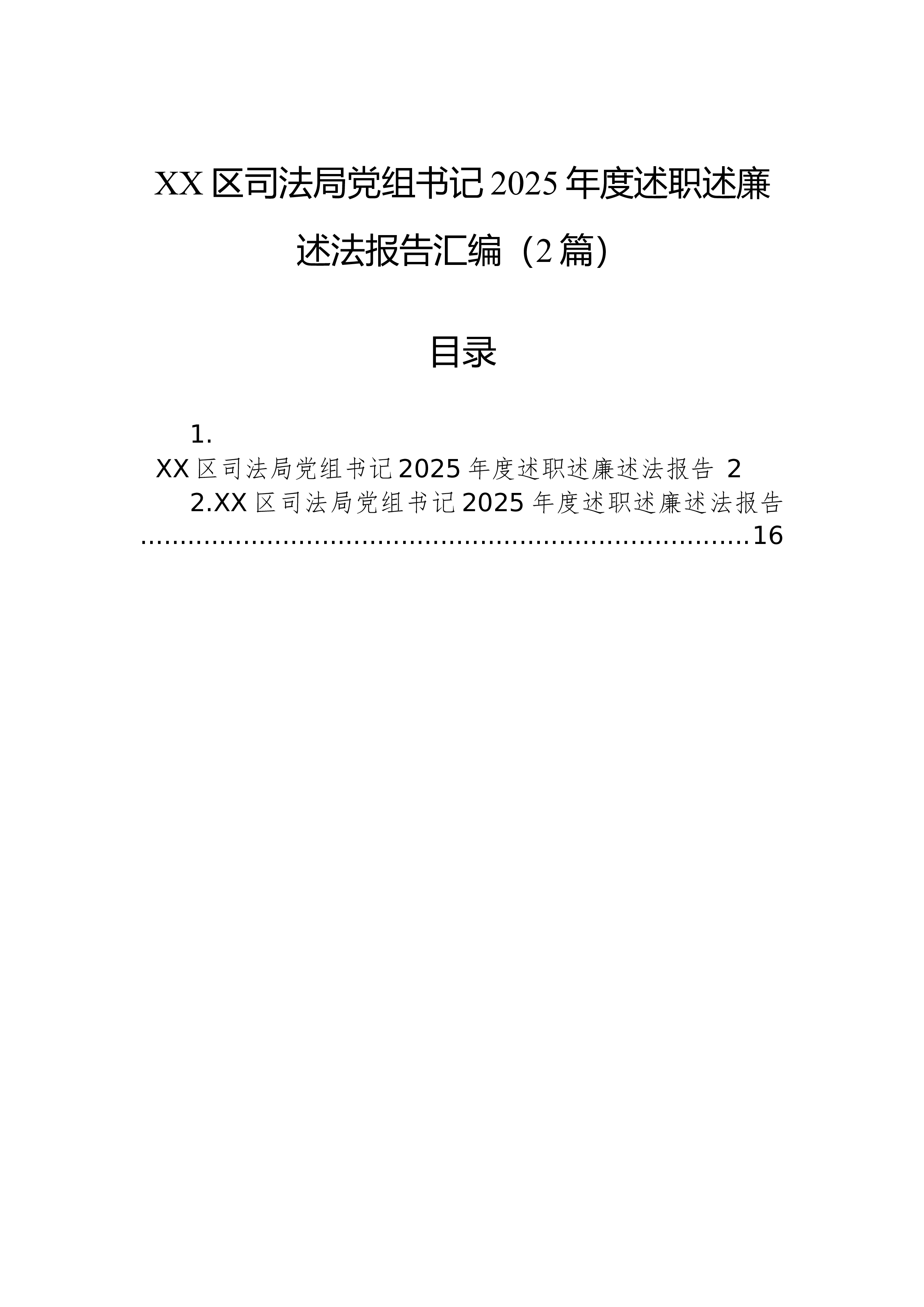 【02篇】XX区司法局党组书记2025年度述职述廉述法报告汇编(2篇)