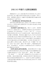 乡长2025年度个人述职述廉报告根据组织分工,本人协助XX同志负责党委工作,主持乡政府全面工作,并履行政府系统的全面从严治党第一责任人职责。按照要求,现将本人2025年度的履职情况和廉洁自律情况报告如下,请予评议。一、深化理论武装,筑牢政治忠诚之基始终将政治建设摆在首位,坚持以习近平新时代中国特色社会主义思想为指导,将理论学习作为提升政治能力和履职本领的根本途径。一是系统学习,提升政治三力。通过个人自学、党委理论学习中心组集中学习、专题研讨和组织生活会等多种形式,持续深入学习贯彻党的二十大和二十届二中、三中全会精神,深刻领会党中央关于全面深化改革、推进中国式现代化的重大决策部署。特别是在2025年6月,习近平总书记再次亲临XX自治区考察并发表重要讲话后,本人第一时间组织政府班子成员和各部门负...