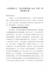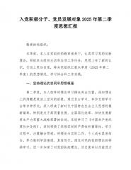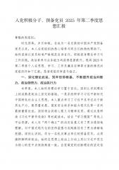 入党积极分子、党员发展对象2025年第二季度思想汇报敬爱的党组织:本季度,本人在党组织的教育培养下,认真学习党的创新理论,积极参与组织生活和各项工作任务,思想上有了新的认识,行动上更加自觉,特向党组织汇报本季度(2025年第二季度)的思想情况、学习体会和工作实践。一、坚持理论武装筑牢思想根基第二季度,本人始终将理论学习摆在突出位置,深知理论上的清醒是政治上坚定的前提。通过自主学习、参加支部学习会等多种形式,深入研读了习近平新时代中国特色社会主义思想的最新篇章,特别是关于高质量发展、全面深化改革、加快发展新质生产力等重大战略部署的论述。系统学习了《中国共产党纪律处分条例》,深刻领悟了党规党纪的严肃性和重要性。学习过程中,注重融会贯通,将理论与实际工作、个人成长紧密结合,努力做到学深悟透、真信笃...