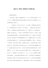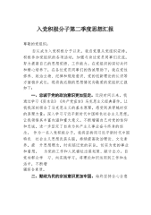 入党积极分子第二季度思想汇报尊敬的党组织:自从成为入党积极分子以来,我自觉服从党组织安排,积极参加党组织的各项活动,加强与身边党员同事们交流,努力提高自己的思想觉悟、工作能力。在党组织的深切关怀和精心培养下,在各位党员同事们的热诚帮助下,我在党性修养、政治立场、纪律和规矩意识、党的创新理论的认识等方面稳步成长,现将我近期的思想情况向敬爱的党组织汇报如下:一、忠诚于党的政治意识更加坚定。近段时间以来,我通过学习《资本论》《共产党宣言》马克思主义经典著作,让我我深刻领会了马克思主义的基本原理,感受到其穿越时空的真理力量;深入学习习近平新时代中国特色社会主义思想,让我领悟其丰富内涵和重大意义。不断增...