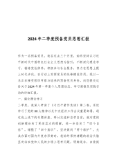 2024年入党积极分子第二季度思想汇报尊敬的党组织:时光飞逝,如流星划过天际,瞬息即逝。在这短暂而宝贵的时光中,我在党组织温暖而坚定的怀抱中,不断汲取着成长的养分,持续砥砺前行,时刻准备着向组织汇报我的所思所想、所感所悟。在这段意义非凡的时间里,我在党组织的深切关怀和精心培养下,稳步成长,取得了长足的进步。一是理论素养更加扎实。近段时间以来,本人以开展党纪学习教育为契机,不断深入学习党的理论知识,提高自己的政治素养和理论水平。通过研读党章党规党纪、马克思主义经典著作,如《资本论》《共产党宣言》等,我深刻领会了马克思主义的基本原理,感受到其穿越时空的真理力量;积极参加党组织组织的各类培训学习活动...