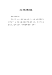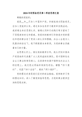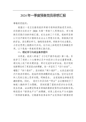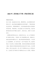 2024年入党积极分子第二季度思想汇报尊敬的党组织:时光飞逝,如流星划过天际,瞬息即逝。在这短暂而宝贵的时光中,我在党组织温暖而坚定的怀抱中,不断汲取着成长的养分,持续砥砺前行,时刻准备着向组织汇报我的所思所想、所感所悟。在这段意义非凡的时间里,我在党组织的深切关怀和精心培养下,稳步成长,取得了长足的进步。一是理论素养更加扎实。近段时间以来,本人以开展党纪学习教育为契机,不断深入学习党的理论知识,提高自己的政治素养和理论水平。通过研读党章党规党纪、马克思主义经典著作,如《资本论》《共产党宣言》等,我深刻领会了马克思主义的基本原理,感受到其穿越时空的真理力量;积极参加党组织组织的各类培训学习活动...