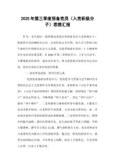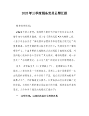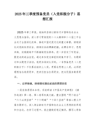 2025年大学生入党积极分子(预备党员)入党思想汇报敬爱的党组织:自从被党组织批准为中共预备党员以来,在党组织的关怀培养下,在支部党员同志的悉心帮助下,我认真学习党的理论知识,不断提高思想政治觉悟,努力以一名正式党员的标准严格要求自己,在思想上、学习上、工作上和生活中都取得了新的进步。现将近期思想、学习、工作和生活情况向党组织汇报如下。一、坚持理论学习,筑牢思想根基作为一名预备党员,我深知加强理论学习是提高政治素养、坚定理想信念的根本途径。这段时间以来,我坚持把学习习近平新时代中国特色社会主义思想作为首要政治任务,通过参加党支部组织的集体学习、个人自学、专题研讨等多种形式,系统学习党的二十大精神和习近平总书记重要讲话精神。在学习过程中,我认真做好学习笔记,及时撰写心得体会,努力做到学深悟透、...