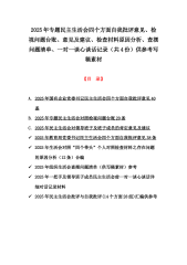 2025年专题民主生活会四个方面自我批评意见、检视问题台账、意见及建议、检查材料原因分析、查摆问题清单、一对一谈心谈话记录(共4份)供参考写稿素材