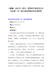 2025年生活会意见建议(工作作风、廉洁自律、思想政治、联系群众4个方面55条)与一把手、班子成员2025年生活会前谈心谈话详细对话稿3篇供参考