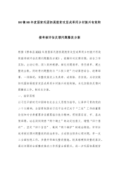 XX镇XX年度国家巩固拓展脱贫攻坚成果同乡村振兴有效衔接考核评估反馈问题整改方案根据《景泰县2022年度国家巩固拓展脱贫攻坚成果同乡村振兴有效衔接考核评估反馈问题整改方案》,我镇针对反馈问题,结合工作实际,主动认领、深入剖析根源,细化问题清单、责任清单、建立整改台账。同时将问题整改与“三抓三促”行动紧密结合、统筹部署、一体推进,在整改落实上见真章、动真格、求实效,为切实做好巩固拓展脱贫攻坚成果同乡村振兴有效衔接,为扎实做好反馈问题整改工作,制定本方案。一、指导思想以习近平新时代中国特色社会主义思想为指导,认真学习贯彻党的二十大精神,全面贯彻落实习近平总书记关于“三农”工作的重要论述和对甘肃重要...