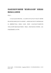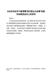 在全区党史学习教育暨“我为群众办实事”实践活动推进会议上的讲话同志们:今天这次会议的主要任务是,深入贯彻习近平总书记关于党史学习教育重要论述和指示精神以及党中央决策部署,全面落实省市党史学习教育推进会精神,紧紧围绕“学党史、悟思想、办实事、开新局”,对全区党史学习教育和“我为群众办实事”实践活动进行再部署、再推进,持续开创各项工作新局面,以优异成绩迎接建党100周年。刚才,区×局等×位同志分别作了典型发言和表态发言,×名同志作了书面发言,认识深刻、态度坚决,亮点突出、措施有力,大家要相互学习借鉴,共同改进提高,推动党史学习教育工作迈上新台阶。总的来看,党史学习教育开展以来,全区各地各部门坚持政...
