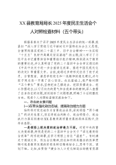 XX县教育局局长2025年度民主生活会个人对照检查材料(五个带头)