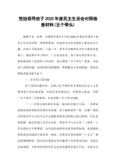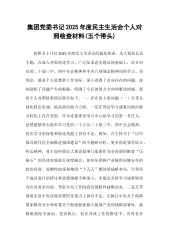 公司领导班子2025年度民主生活会对照检查材料(五个带头)根据市委关于召开2025年度民主生活会的统一部署和要求,*市水务投资集团有限公司领导班子紧扣会议主题,在深入开展理论学习和广泛征求意见建议的基础上,严肃认真开展批评和自我批评,围绕“五个带头”全面深入查摆突出问题,深刻剖析问题根源,明确了今后的努力方向和整改措施。现将班子对照检查情况报告如下。一、存在的主要问题(一)在带头强化政治忠诚、提高政治能力方面。一是政治判断力仍需在复杂局势中持续锤炼。班子能够坚决拥护“两个确立”、做到“两个维护”,但在面对宏观经济下行压力与行业发展深刻变革的双重挑战时,对其中蕴含的机遇与风险的分析研判不够深入透彻。例如,在响应市委关于服务*地区承接产业转移示范区建设的战略部署时,班子虽然迅速组织了学习,但在如...