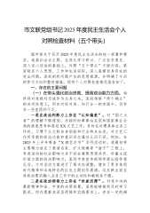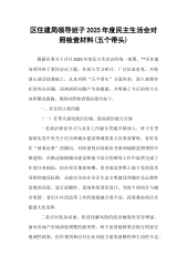 住房和城乡建设局党组书记2025年度民主生活会个人对照检查材料(五个带头)