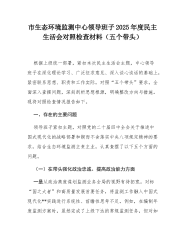 XX市市政工程管理处2025年度民主生活会班子对照检查材料(五个带头)根据上级统一部署,管理处领导班子紧扣本次民主生活会主题,在深入学习党的二十届四中全会精神及中央八项规定精神学习教育基础上,通过谈心谈话、征求意见、集体研讨等方式,对照五个方面具体要求,紧密联系思想、职责和工作实际,深入查摆问题,深刻剖析根源,明确整改方向。现将班子对照检查情况报告如下。一、存在的主要问题(一)在带头强化政治忠诚、提高政治能力方面一是理论武装与市政实践融合的深度尚有不足。班子集体学习习近平新时代中国特色社会主义思想能够做到及时跟进,但在将其蕴含的立场观点方法,系统转化为指导城市市政设施精细化管养、推动城市有机更新的具体思路和务实举措上,结合点找得不够精准。例如,在谋划XX片区路网综合提升工程时,更多侧重于交通...