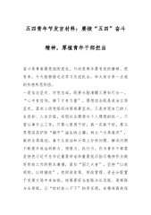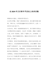 五四青年节座谈会讲稿:永远跟党走、建功新时代,在高质量发展的新征程上勇当先锋同志们:今天上午,我们召开X青年干部员工代表座谈会,热烈庆祝中国共产主义青年团成立102周年,引导激励X广大团员青年干部在实现中华民族伟大复兴中国梦的新征程上奋勇前进,在开创X高质量发展的新局面中勇当先锋。刚才8名青年同志作了非常好的发言,我用16个字作评语:朝气蓬勃、深入思考,勇立潮头,攻坚克难。你们是X青年员工的优秀代表,有这样优秀的年轻同志,我认为X的事业后继有人,大有可为。大家就像习近平总书记所说的那样,让人迎面就能感受到年轻干部应有的清澈和纯粹。X来之不易的成绩,离不开一代代X青年的拼搏进取和无私奉献,你们在...