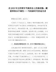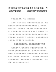 在2025年五四青年节演讲会上的演讲稿:白衣执甲赴青春——一名青年医生的时代答卷