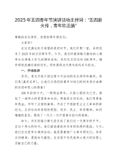 在2025年五四青年节演讲会上的演讲稿:白衣执甲赴青春——一名青年医生的时代答卷尊敬的各位领导、同仁、青年朋友们:大家好!今天站在这里,望着台下清一色的白大褂,我忽然想起五年前那个在住院部走廊哭红眼睛的自己。那时的我,刚结束一场12小时的抢救,看着监护仪上逐渐平稳的生命体征,突然读懂了希波克拉底誓言里"健康所系,性命相托"八个字的重量。作为新时代的青年医生,我们的青春或许没有聚光灯下的璀璨,却在无影灯下、在病历本上、在与死神赛跑的每分每秒里,书写着属于医者的滚烫答卷。一、青春是初见时的悸动,在生命的裂痕里种下希望记得规培那年,我负责照顾一位患白血病的小姑娘小雨。15岁的她总爱盯着病房的窗户发呆...