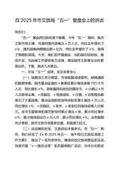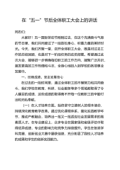 在五一节后全体职工大会上的讲话——收心聚力再出发锚定目标加油干同志们:今天,我们召开节后第一次全体职工大会,既是收心会、动员会,更是一次鼓劲会、誓师会。首先,我代表公司领导班子,向全体职工及家人致以节日的问候!五一劳动节是属于劳动者的节日,正是每一位同事在岗位上的辛勤付出,才成就了公司的稳步发展。希望大家在短暂休整后,以更饱满的热情、更充沛的精力迅速投入工作,共同推动下半年各项任务再上新台阶。一、收心归位,迅速切换工作状态假期是为了更好地调整,而调整是为了更高效地出发。大家可能还沉浸在节日的轻松氛围中,但当前公司面临的形势不等人、任务不等人、机遇更不等人。在这里,我提三点“收心”要求:第一,从...