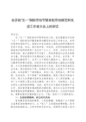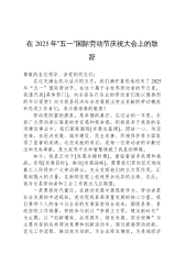在庆祝“五一”国际劳动节暨表彰劳动模范和先进工作者大会上的讲话同志们:在“五一”国际劳动节即将到来之际,我们隆重召开庆祝“五一”国际劳动节暨表彰劳动模范和先进工作者大会,共同庆祝劳动者的节日,表彰全市各条战线上涌现出的劳动模范和先进工作者。在此,我代表市委、市政府,向受到表彰的先进典型表示热烈的祝贺!向全市广大工人、农民、知识分子和全体劳动者,致以诚挚的节日问候!。劳动是推动社会进步的根本力量,劳动者是时代发展的核心主体。近年来,在市委、市政府的坚强领导下,全市广大干部职工围绕中心、服务大局,以勤劳和拼搏为画笔,在经济社会发展的画卷上描绘出壮丽篇章。今天受表彰的劳动模范和先进工作者,是全市劳动...