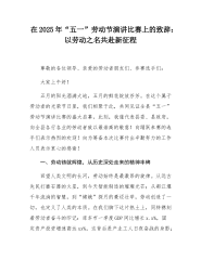 在2025年“五一”劳动节演讲比赛上的致辞:以劳动之名共赴新征程
