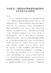 在庆祝“五一”国际劳动节暨表彰劳动模范和先进工作者大会上的讲话
