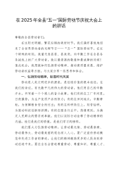 在 2025年全县“五一”国际劳动节庆祝大会上的讲话