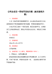 活动方案公司企业五一劳动节活动方案(娱乐游戏方案)