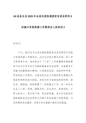 在XX县乡村振兴暨“两清两改两治理”工作专题会上的讲话(精品)同志们:今天,我们召开县委农村工作领导小组专题会议,主要任务是深入学习贯彻习近平总书记关于“三农”工作的重要论述,全面落实省、州相关会议精神,系统分析当前我县乡村振兴和农村人居环境整治工作面临的形势,对下一阶段重点工作进行再动员、再部署、再落实。刚才,XX同志传达了上级会议精神,XX同志作了具体的工作安排,我都完全同意,请大家务必深刻领会,认真抓好贯彻执行。今年是巩固拓展脱贫攻坚成果同乡村振兴有效衔接五年过渡期的收官之年,也是“十四五”规划的最后一年,做好今年的“三农”工作,意义特殊,责任重大。全县上下必须清醒认识到,我们正处在一个承前启后、继往开来的关键节点。过去五年,我们付出了巨大的努力,历史性地解决了绝对贫困问题,为全面推进...