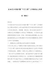 在XX县巩固拓展脱贫攻坚成果同乡村振兴有效衔接工作调度会上的讲话(精品)同志们:今天我们召开全县巩固拓展脱贫攻坚成果同乡村振兴有效衔接工作调度会,主要任务是深入贯彻落实习近平总书记关于“三农”工作的重要论述,严格按照党中央决策部署和省州工作要求,分析当前形势,查找问题短板,安排部署下一步重点工作。刚才,各乡镇、县级有关部门汇报了工作进展、存在问题和下步打算,相关同志作了点评,也通报了近期督导检查发现的问题,讲得都很好,很具体,很有针对性。打赢脱贫攻坚战,是我们过去几年工作的重中之重,取得了决定性的历史成就。在全县上下的共同努力下,我县累计实现XX个贫困村全部出列,XX户、XX余名建档立卡贫困人口稳定脱贫,贫困发生率历史性清零,绝对贫困问题得到历史性解决。这是我们必须充分肯定的伟大成就,是全体...
