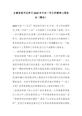 乡镇党委书记学习2026年中央一号文件精神心得体会(精品)2026年是“十五五”规划的开局之年,中央一号文件如期而至,为新一年的“三农”工作指明了方向,擘画了蓝图。作为一名乡镇党委书记,我第一时间组织并参与了中心组的专题学习。通过逐字逐句的研读和深入思考,我对文件精神有了更深刻的领会,对自己肩负的责任有了更清醒的认识。下面,我结合个人思想和工作实际,谈几点不成熟的心得体会。一、深学细悟,把握乡村振兴的时代方位一是深刻领悟“国之大者”的战略高度。文件开宗明义指出,“农业农村现代化关系中国式现代化全局和成色”。这让我深切感受到,我们身处基层一线,所做的每一项工作,都并非偏于一隅的琐碎事务,而是与国家发展大局紧密相连。过去,我可能更多地从本乡镇发展的角度思考问题,但现在我认识到,推动XX乡的发展,...