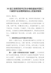 XX县工信局党组书记在乡镇街道宣讲党的二十届四中全会精神报告会上的宣讲报告同志们,朋友们:大家好!今天,我们齐聚一堂,共同学习领会党的二十届四中全会精神。窗外是熟悉的乡土,身边是并肩奋斗的战友,我想用最朴实的话语,和大家聊聊这次全会对我们在座每一位乡镇、村居干部,对XX县这片热土,到底意味着什么。我们不讲空话,只谈实际;不念稿子,只说心里话。希望通过今天的交流,大家能把全会精神这颗饱满的种子,带回到各自的岗位上,在XX县的广袤乡村里,让它生根、发芽,结出丰硕的果实。一、深刻领悟全会召开的重大时代意义党的二十届四中全会,是在新征程关键节点上召开的一次具有里程碑意义的大会。它像一座灯塔,为中国式现代化的航船指明了前进方向;它又如同一声号角,动员全国上下为实现新的宏伟目标而团结奋斗。对于身处基层一...