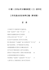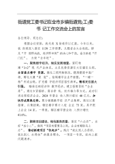 街道党工委书记、镇党委书记在全市乡镇街道党(工)委书记工作交流会上的发言材料汇编(7篇)1.吹响“奋进号”夺取“开门红”...................................................22.打好主动仗力拼“开门红”.....................................................43.聚力推动经济“加速跑”奋力实现首季“开门红”..............64.响鼓重锤擂动发展快马加鞭决战首季.............................85.紧抓实干拼抢首季旺十里桃乡勃发新动能................