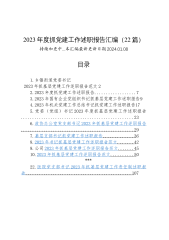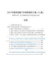 2023年度抓党建工作述职报告汇编(21篇)持续加更中...本汇编最新更新日期2024.01.05目录1.乡镇街道党委书记2023年抓基层党建工作述职报告范文22.2023年度抓党建工作述职报告..................73.2023年国有企业党组织书记抓基层党建工作述职报告94.2023年机关党建工作总结书记抓党建工作述职报告175.党委(党组)书记2023年度抓基层党建工作述职报告.................................................236.政协办公室党支部书记2023年抓基层党建工作述职报告.........................